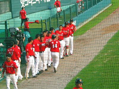 모든 선수들이 왈론드 투수를 맞이하러 나가서 텅빈 덕아웃..^^