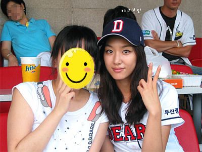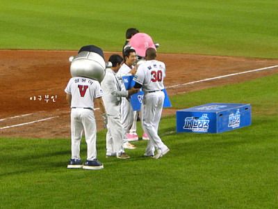 엘쥐 유니폼을 입고..모자와 응원 방망이는 베어스 것을 입고 들고 있더군요