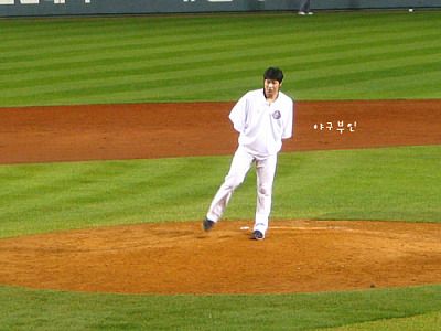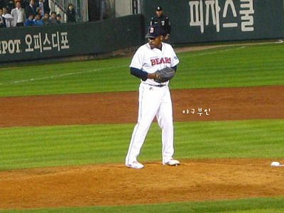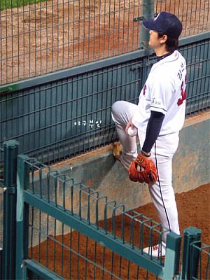 투수교체 때 스트레칭 하시는 두목곰..^^