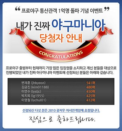 이번 응원단엔 1억 -1 당첨자와 +1 당첨자도 같이 왔었다는..^^*