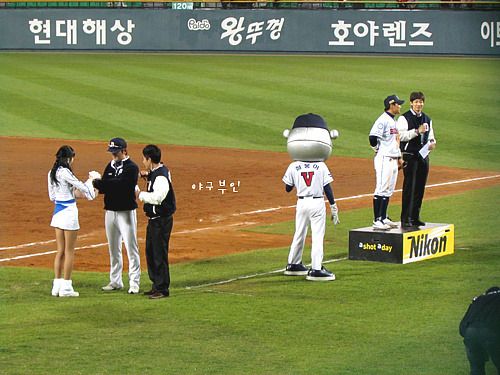 야구장에 들어가는데 멋진 선수가 서있더군요..바로 만기제대하신 김 병장님..ㅋ