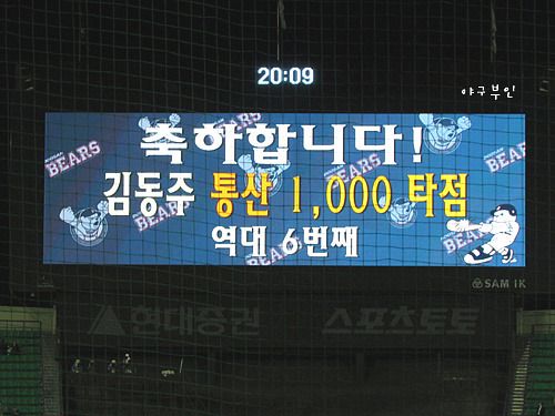 5회 말, 김동주 선수의 멋진 2루타가 나왔습니다