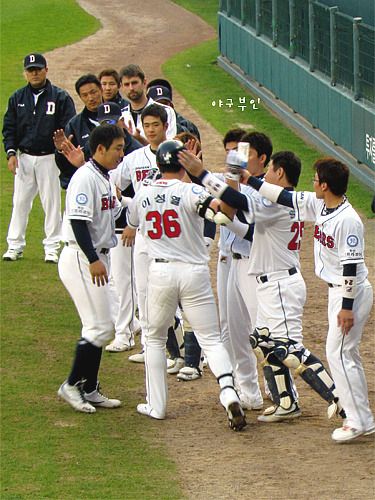 5회 말, 김현수 선수에 이어 손시헌 선수까지 연속적으로 몸에 공을 맞았습니다..ㅠㅠ