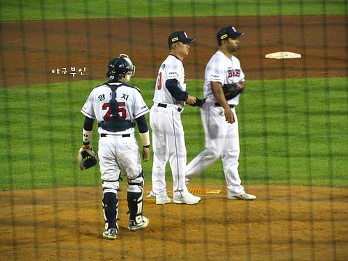 거기에 실책으로 기록되지는 않았지만 6회 초 이원석 선수의 3루 주자 태그미스와 노련한
