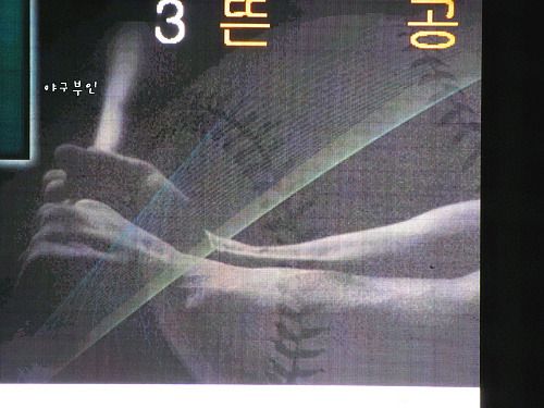 전광판에는 야구공과 그것을 쳐내는 타자의 손과 손에 들린 배트가 보이는데 다들 아셨나요..??