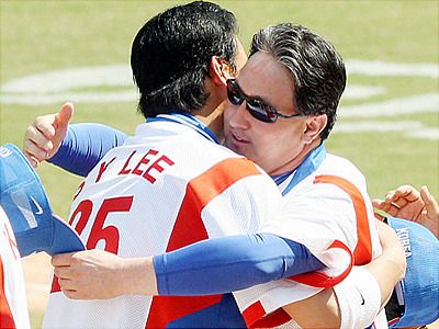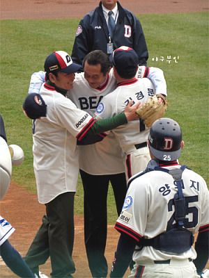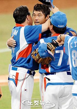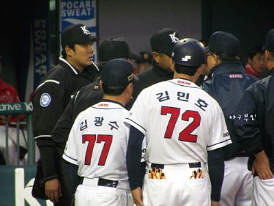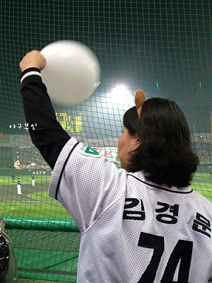 그런데 이상하게도 저는 포수마스크를 쓴 김경문 선수보다는