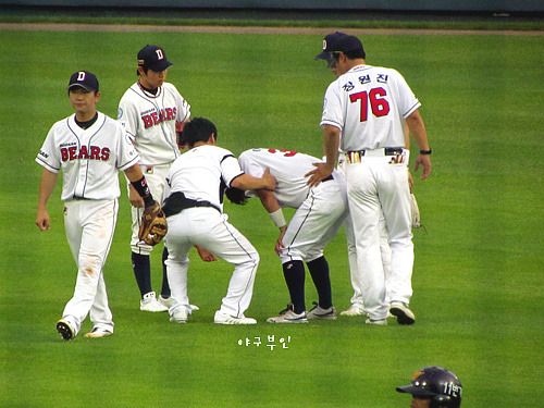 2회 초 공을 잡다 부상을 당한 이종욱 선수..결국 4회 초에 교체