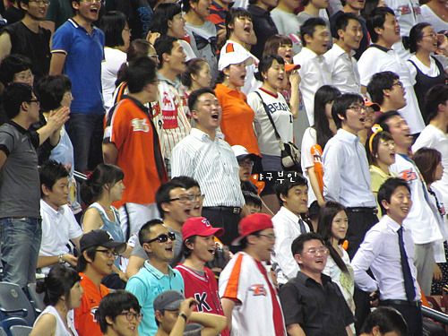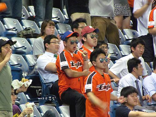 최강한화를 외치는 이글스 팬 사이에서 같이 열심히 외치는 호랑이와 곰팬..ㅎ