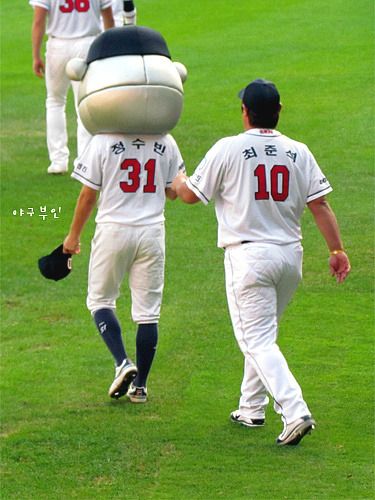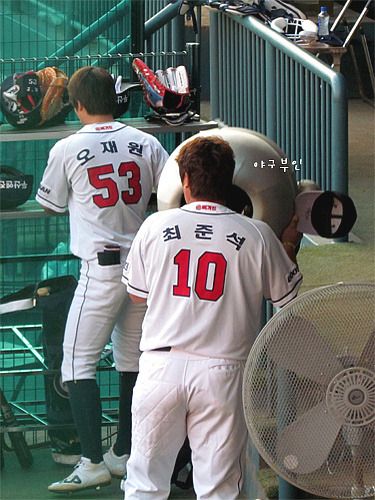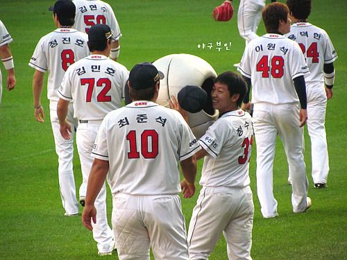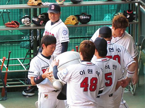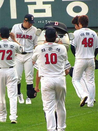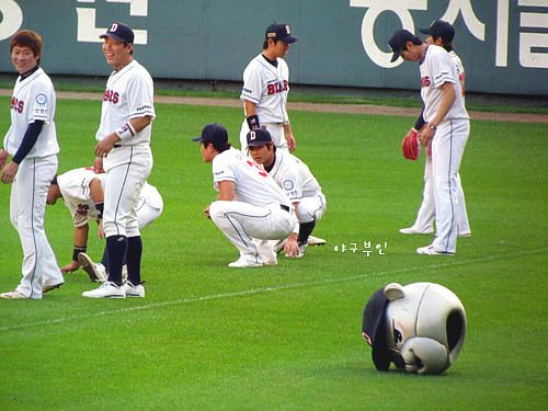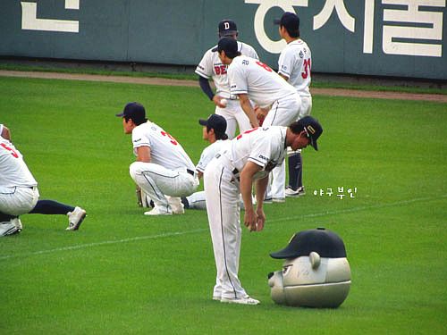 바로 철웅이 놀이에 빠진 베어스 선수들의 모습을 담은 사진이랍니다..ㅎㅎ