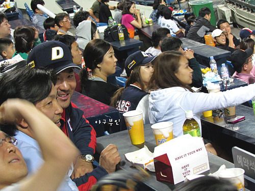 9회 말까지 경기를 다 지켜봤던 시구자와 시타자..이겼더라면 더 좋았을 텐데