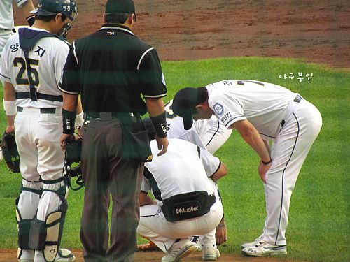 상대선수의 타구에 다리부분을 살짝 맞은 양현 투수..가벼운 타박상이라고 하네요