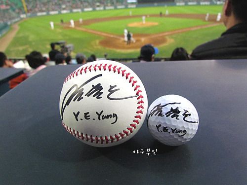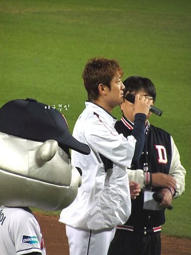 PGA 챔피언인 양용은 프로, 야구장에 오셨네요..베어스를 응원한다고 하셨어요..^^