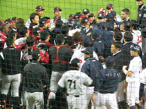 영상으로 잠깐 담아본 양팀의 벤치클리어링 장면 (전 한 마디도 안 했습니다..^^)