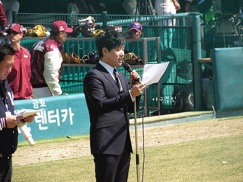 베어스 열혈팬인 sbs 배성재 아나운서..2년 연속 개막전 행사를 진행합니다