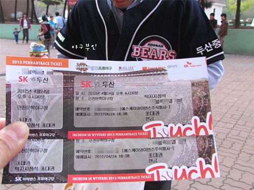 4월 24일 화요일, 인천 문학구장에서..올 시즌 첫 원정경기를 관람하고 집에 왔습니다.