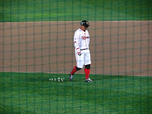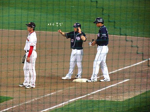 5회 말, 2루와 3루 사이에 있던 조인성 선수..인필드 플라이를 보면서 그냥 멍~~