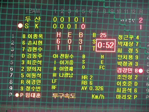 3회 초가 시작되더라구요..그러더니 어쩜~!! 기다렸다는 듯이 딱 점수를 내더군요..^^