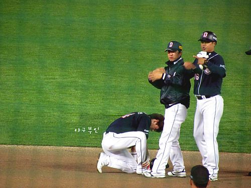 5회 초, 2루에 있던 고영민 선수..주루플레이를 펼치다가 그만 발목이 삐끗