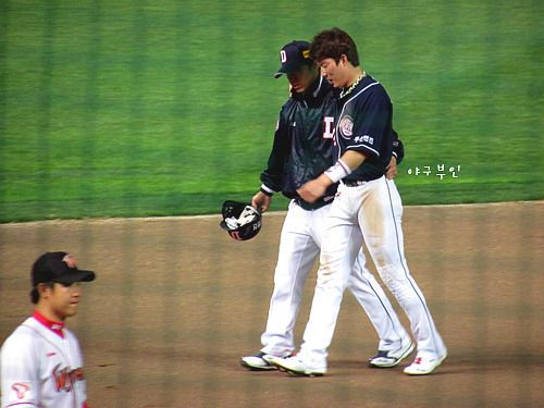 몸에 맞은 볼로 출루한 종박..2루 도루 성공~!!