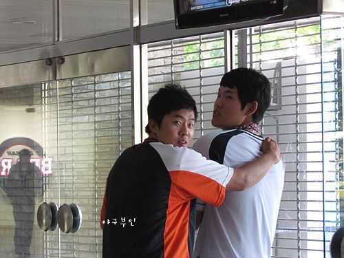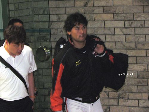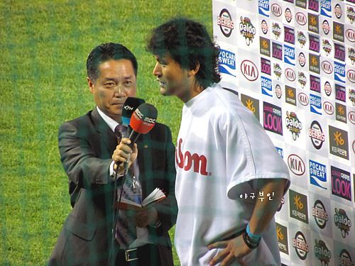 인터뷰하는 박찬호 투수..그런데 이글스의 홍보팀장님이 인터뷰를..??