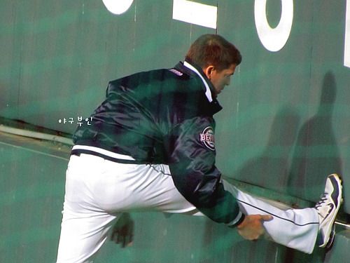 경기 직전 가볍게 몸을 풀기 시작한 박찬호 투수