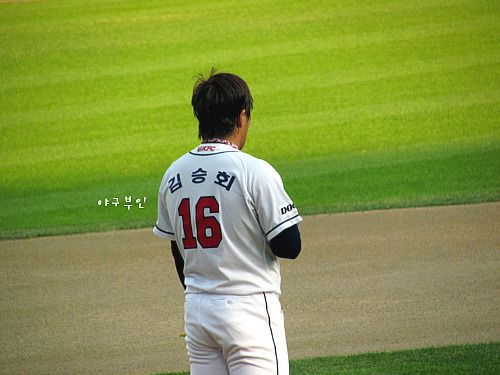 경기는 시작도 안 했는데 벌써부터 땀을 흘리는 땀승회 투수..^^