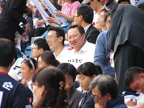 두산그룹 박용만 회장..친구분? 지인들?과 블루석에서 관람