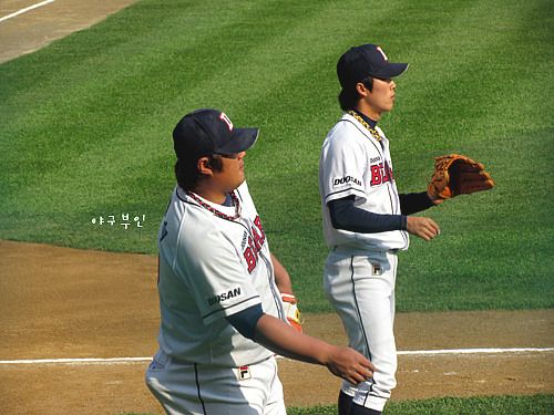 마음만은 홀쭉한 최준석 선수와 몸이 홀쭉한 허경민 선수..ㅋ