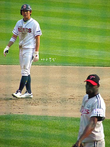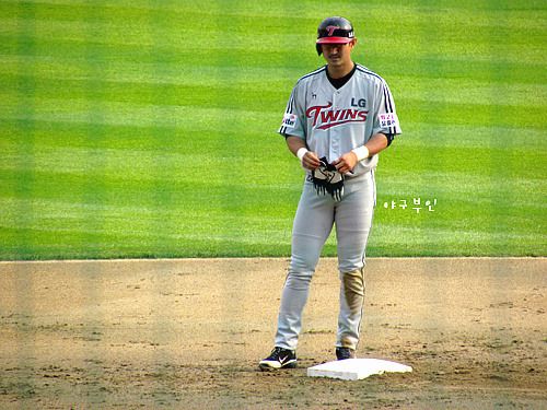 3회 초, 행운의 안타로 2루까지 나간 박용택 선수