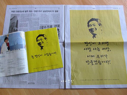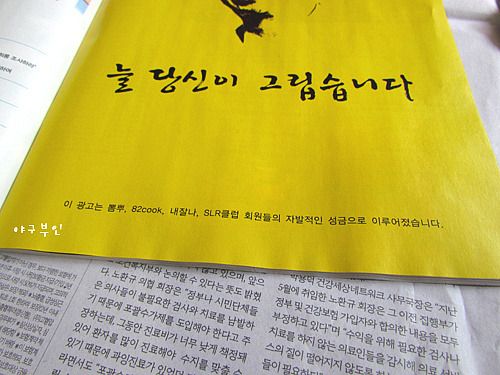 3주기를 맞아 한겨레 신문과 한겨레 21에 나온 인터넷 사이트 회원들의 자발적 광고