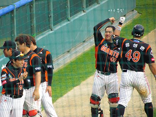 6회 초, 솔로홈런을 날린 홍성흔 선수