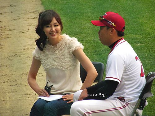 경기 전, 두 건의 인터뷰를 하느라 분주했던 김민아 아나