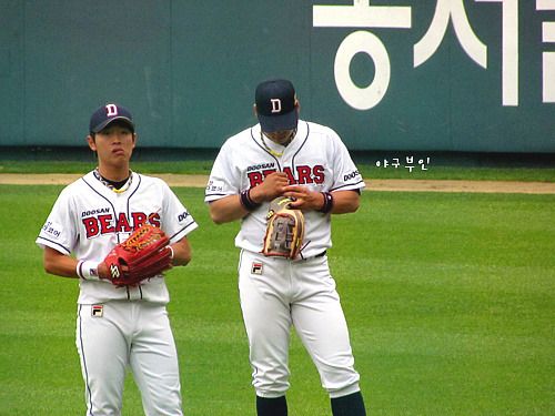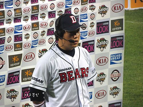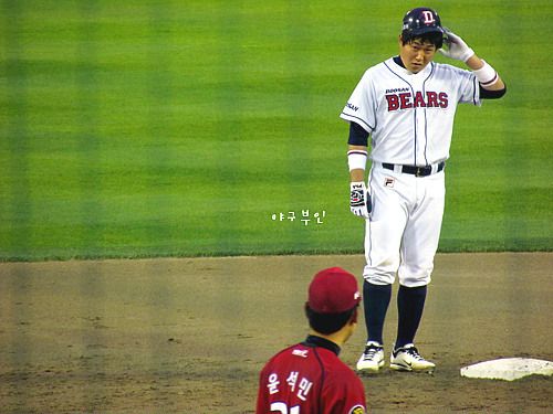 윤석민 투수의 공을 끈질기게 쳐내면서 결국 안타를 만들어낸 두목곰