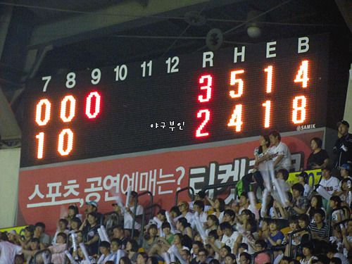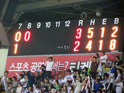 7회 말, 한 점 추가하며 2대 3으로 따라가는 베어스