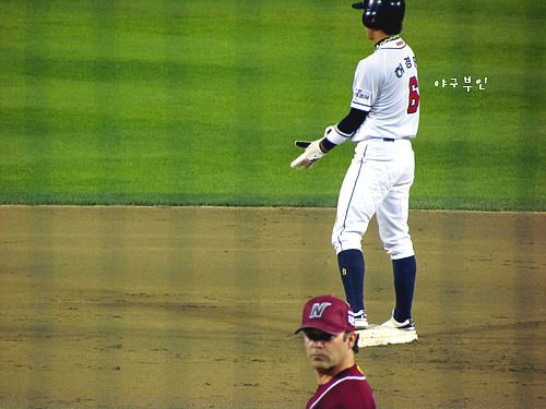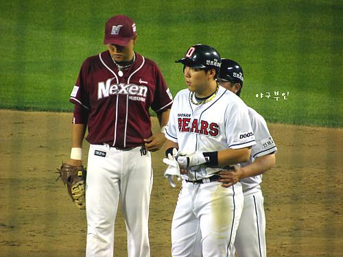고영민 선수의 희생번트..나이트 투수의 악송구로 허경민 선수 특점