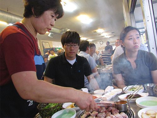 더워 죽겠다면서도 끝까지 앉아 남은 고기 한 점을 집어먹고 찌개까지 떠먹는 아들녀석..ㅋㅋ