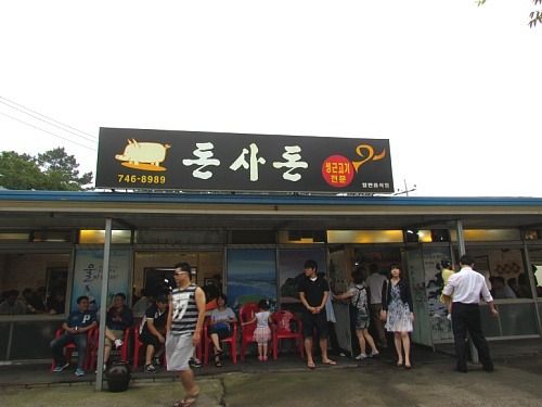 공항으로 갈 생각이었는데 헉~ 하필 가는 길에 이 유명하다는 음식점 '돈사돈'이 있는 겁니다