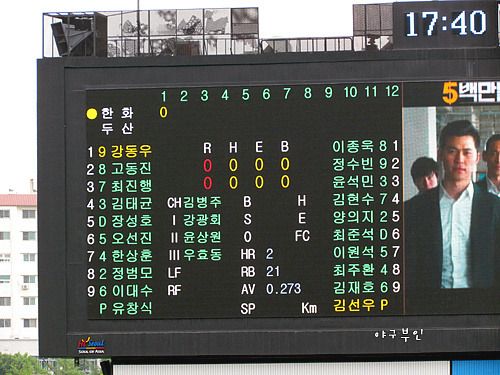 다섯 점을 내주고 강판되고 말았습니다..-.-; 상대 선발인 유창식 투수는 같은 5이닝을