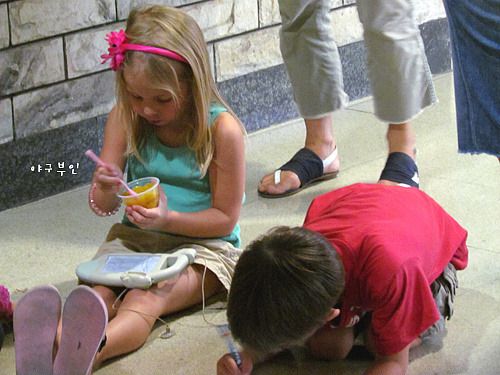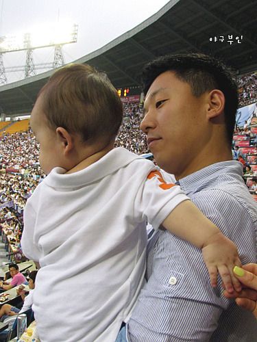붕어빵 아들과 같이 야구 보는 중..앞모습은 궁금하시라고 안 올림..ㅋ