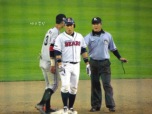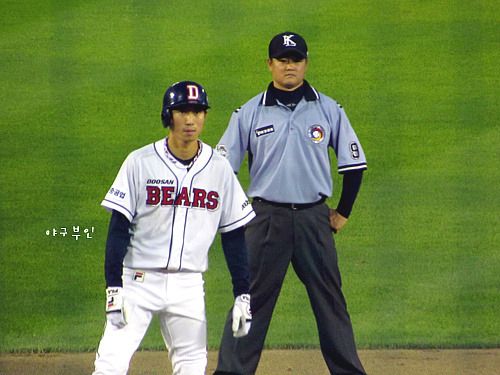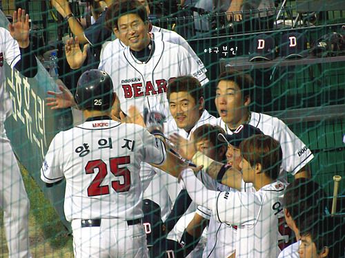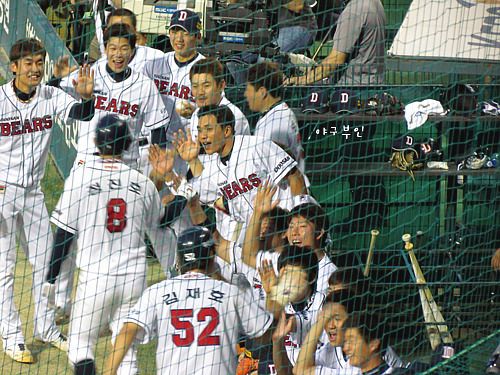 집중력을 보이고 있는 베어스 선수들..두 점을 뒤지고 있던 5회 말, 안타 네 개와..볼 넷