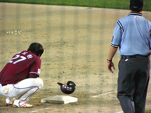 5회 초, 견제사를 당한 허도환 선수..무척 아쉬워하네요