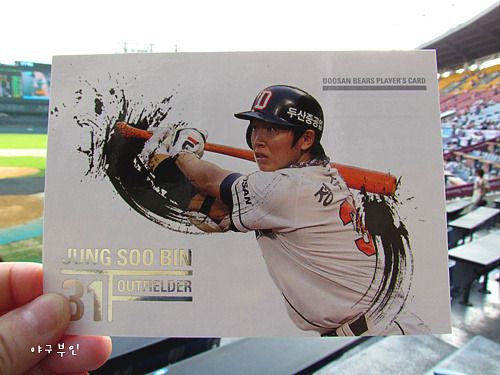 지난 번에 받았는데 깜박 잊고 사진을 못 찍었던 정수빈 선수 포토카드