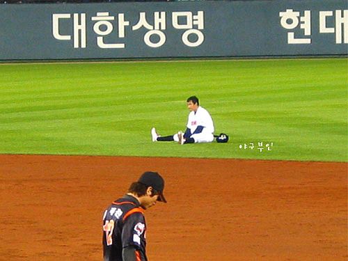 왜 갑자기 김동주 선수의 얘기 그것도 경기와 전혀 상관없는 팬에 대한 얘기를 하는 것인지