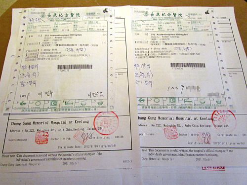 가이드가 병원진단서와 약을 전해줬습니다