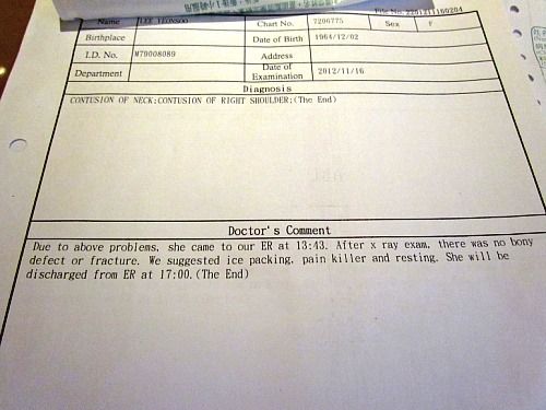 의사 소견 좀 보소..아이스팩과 휴식을 권했는데 걍 퇴원했대..ㅋㅋㅋ