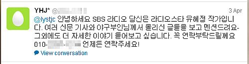 작가가 멘션을 줬는데 미쳐 못 봤다는..^^; 구단에 전화해서 내게 연락 가능한지 알아본 듯