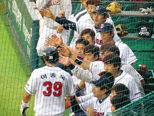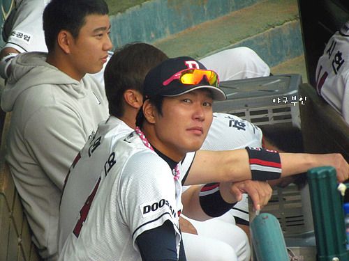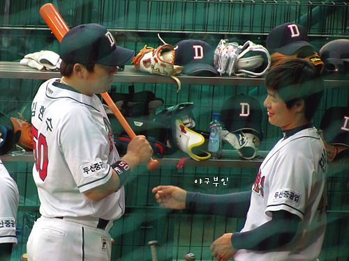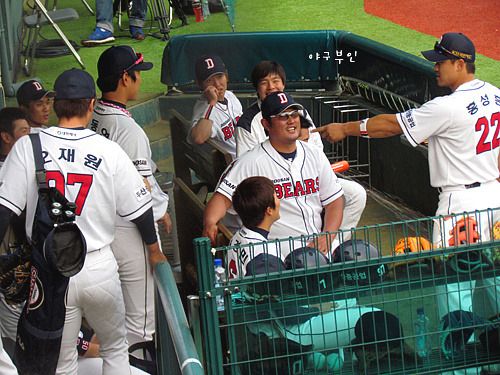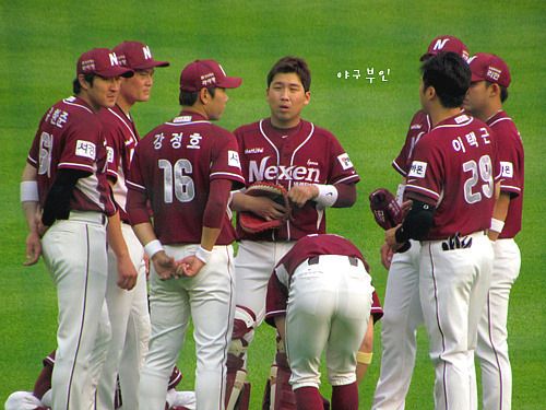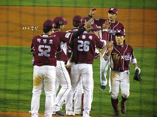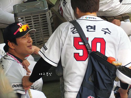 히어로즈의 누군가와 몸짓으로 얘기하고 있는 써니 님..^^