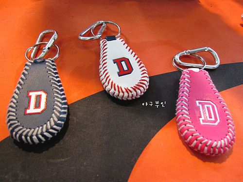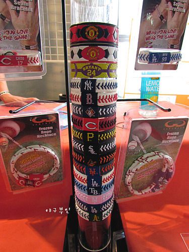 야구장에 있는 소품매장인데 야구공과 같은 가죽소재로 만든 팔찌와 열쇠고리라고 하네요