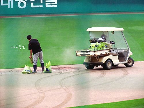 이닝 바뀌는 사이 잡초 뽑는 심판..^^