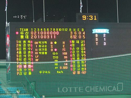 호우를 뚫고 날아간 사직구장..베어스, 1회 실점은 곧 패배..ㅠ
